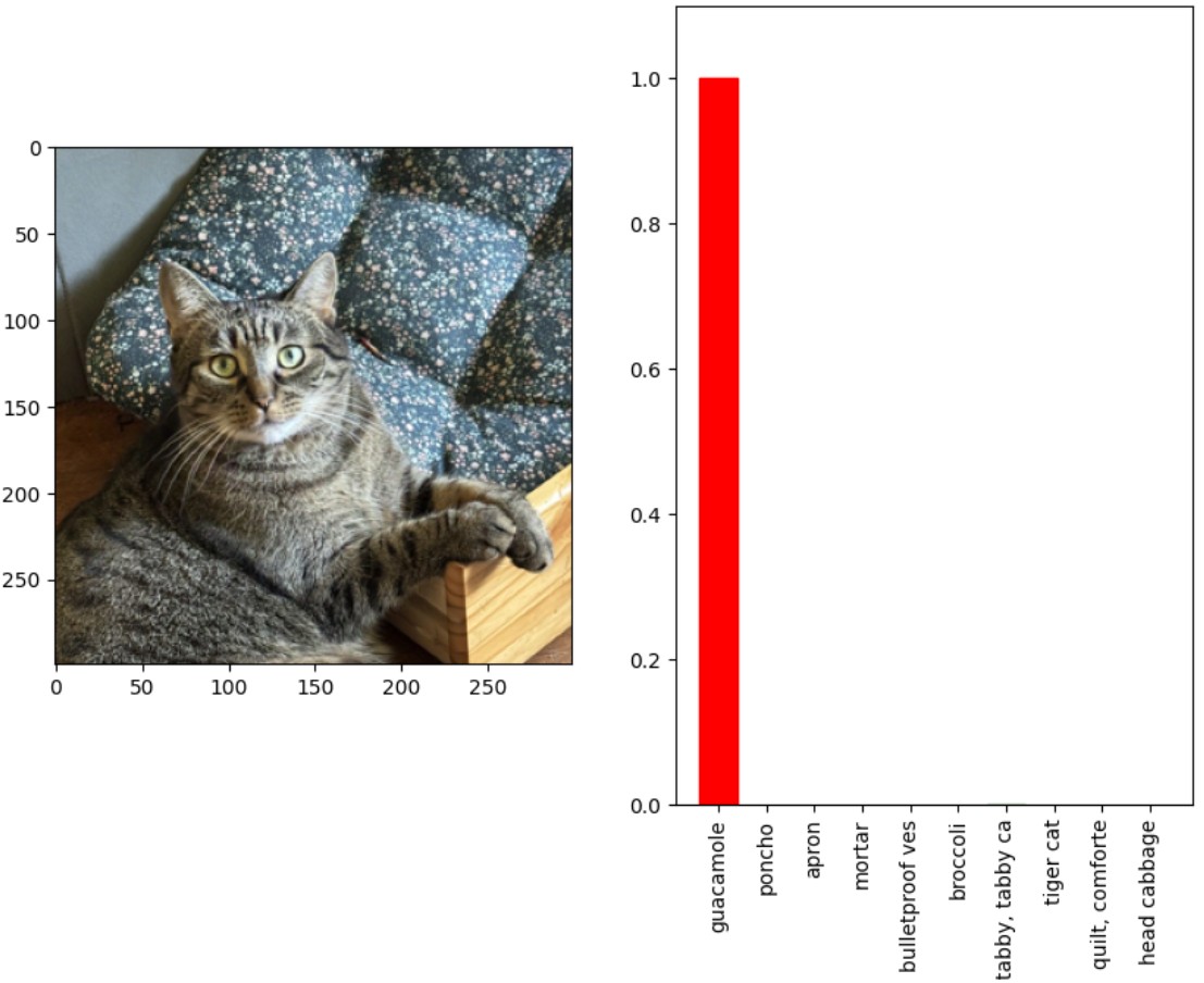 Tak samo jak dodanie małych perturbacji powoduje, że model zamiast mojego kota rozpoznaje awokado.
